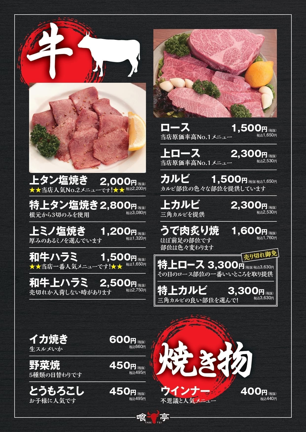 タンとハラミが、外せませんが。